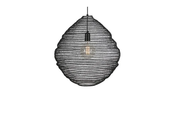 Tazza 1 Riippuvalaisin Light Black herättää huomiota taidokkaalla ja luovalla muotoilullaan, joka luo kauniin kohokohdan olohuoneen tai makuuhuoneen sisustukseen. Tilava lampunvarjostin ja nerokas lankarakenne muodostavat yhdessä taideteoksen valaisimesta, joka löytää luonnollisen paikkansa huoneen keskipisteestä. Muotoilussa on pieniä epäsäännöllisyyksiä, jotka antavat valaisimelle herkän ilmeen ja pehmentävät massiivirautaista muotoilua. Metallilangat muodostuvat pieniksi silmukoiksi ja antavat lampunvarjostimelle erityisen kuvioidun ilmeen. Tiivis rakenne suojaa valonlähdettä myös häikäisyä vastaan. Tuloksena on suora ympärivuotinen valaistus, joka ei leikkaa silmiä. Koska valonlähde on näkyvissä, valaisin on hyvä varustaa koristeellisella polttimomallilla, kuten pallopallolampulla, joka tukee lampunvarjostimen tuuheaa rakennetta.